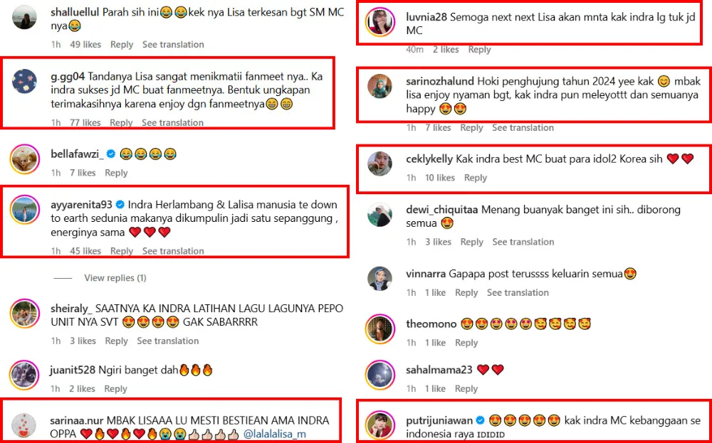 Lisa wasn’t the only one grateful for Indra’s hard work. Many Lilies (Lisa fans) and BLINKs (BLACKPINK fans) also praised the host for doing a great job during the event. Many commended him for keeping the energy up and making the event more enjoyable for Lisa and her fans. Some also said they hope Indra will continue to host Lisa whenever she holds an event in Indonesia.