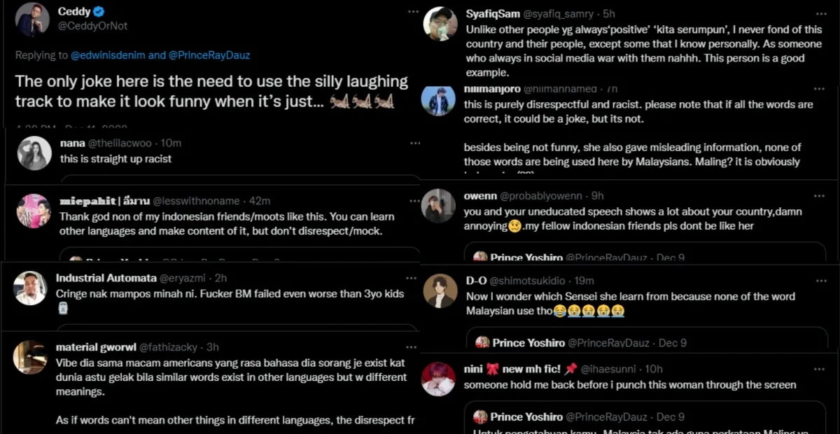 It is not clear whether the mistranslations were intentionally done to make fun of the Malay language but Malaysian netizens were not having it and criticised the influencer for spreading misinformation and disrespecting the language. The video has been reposted on Twitter where many expressed their dissatisfaction including Food vlogger, Ceddy.