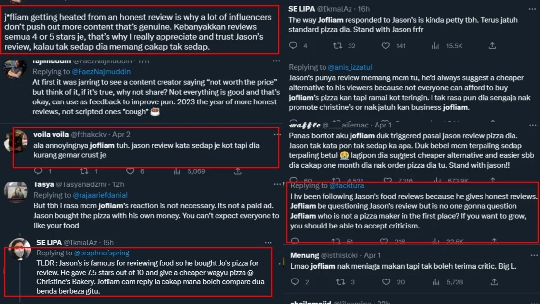 The TikTok review went viral with 1.2 million views at the time of writing and the entrepreneur was apparently not happy with it. While the original video response has been taken down, netizens on both TikTok and Twitter witnessed the public figure apparently getting upset over the TikToker’s review. According to one of the tweets shown below, Jofliam said that the Foodie content creator should not have compared his pizzas with another pizza establishment.