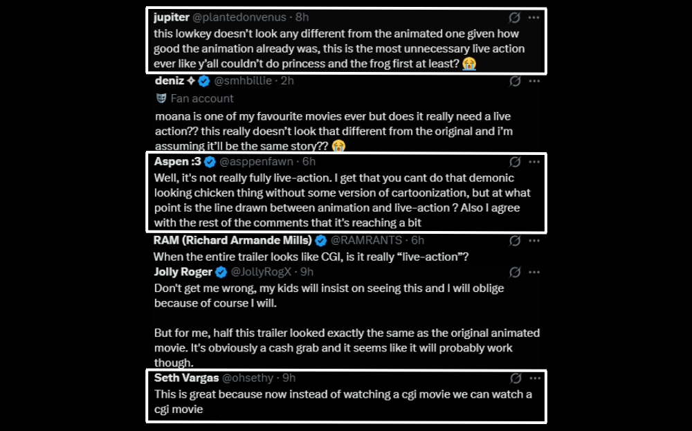 Another common talking point is the blurred boundary between animation and live action itself. With scenes of gravity-defying water, characters soaring through the air, and Maui seamlessly transitioning into various creatures, viewers questioned whether the film is truly “live action” in spirit. As one user pointed out, “At what point is the line drawn between animation and live-action?” The heavy reliance on CGI has led many to compare the film to Disney’s previous photorealistic remakes like “The Lion King”, “The Jungle Book”, and “The Little Mermaid” which also prompted similar debates.