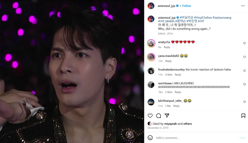 Jackson’s reaction went viral after the performance, and J.Y. Park himself uploaded the meme on his Instagram account. Some even dubbed the moment one of the highlights of the award ceremony. While it has been five years since the performance, the singer’s reaction is still widely used amongst K-pop fans on social media when they want to react to something confusing or surprising.