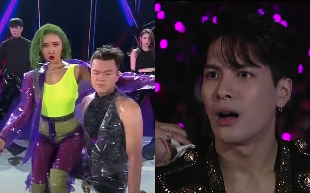 Jackson and his GOT7 members recently appeared in an episode of “IDDP” on the 1theK YouTube channel. For the show, the idol group dived into their profiles and shared their reactions to some of their past viral stories. When talking about Jackson, GOT7 brought up his viral “shocked face” meme, which originated from J.Y. Park’s (박진영) 2019 Mnet Asian Music Awards performance with MAMAMOO’s (마마무) Hwasa (화사).