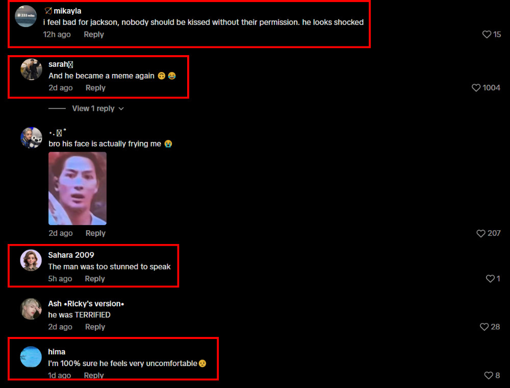 The interaction between Jackson and the male fan prompted mixed reactions from fans. Many were amused by the moment, laughing at Jackson’s expressions. Some also quipped at his embarrassment, saying he created another meme out of himself. However, some fans were unhappy with the male fan’s actions, calling it blatant harassment. Others also argued that Jackson was likely uncomfortable with the kiss.