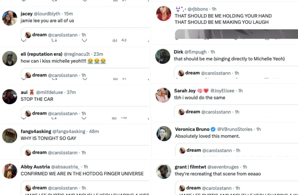 omg here’s Jamie Lee Curtis yelling “shut up!” and then kissing Michelle Yeoh on the lips after winning her SAG award pic.twitter.com/5cBtzSOfxg