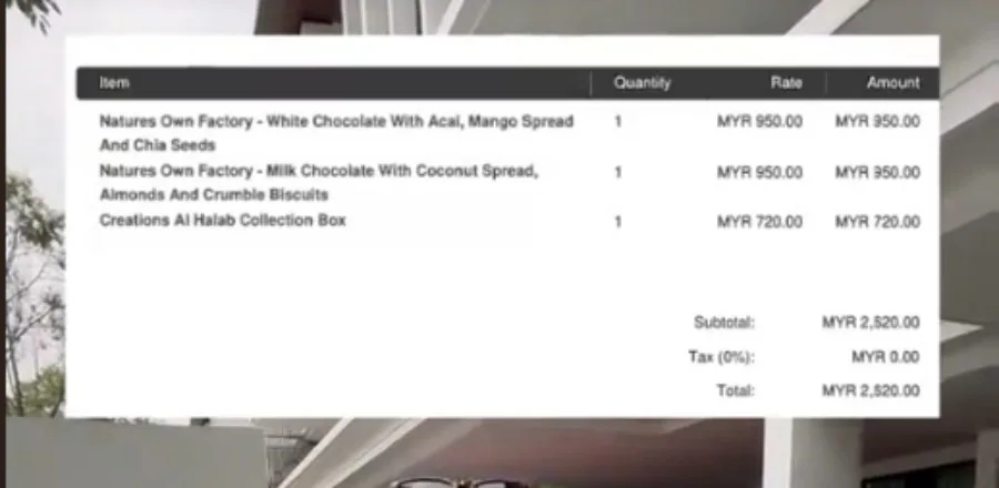 If you’re curious to know how much each chocolate bar costs, according to the receipt Janna shared, the two from the Nature’s Own Factory brand were RM950 each, while the one from Creations by AlHallab cost RM720. The shipping cost, however, was not mentioned, so we can only imagine how much Janna Nick spent in total.