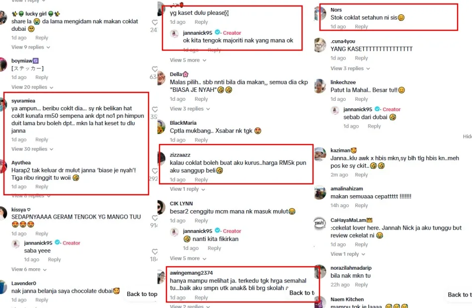 In her latest TikTok post, Janna Nick excitedly announced that she had received packages of chocolate she had ordered from Dubai. After collecting her order from the delivery man, she revealed that she had spent over RM2,500. “These are the most expensive chocolates I have ever bought, guys! All the way from Dubai,” she said in the video.