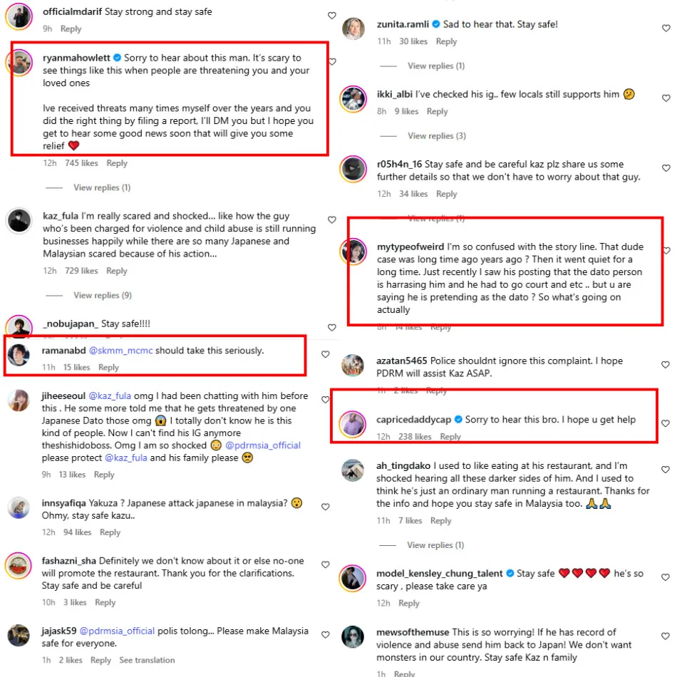 Shortly after he posted the video, Malaysian netizens and celebrity friends expressed their support and sympathy for the influencer. Many offered advice on further steps he could take to protect his family, while others were shocked by the allegations and tagged the Malaysian Communications and Multimedia Commission (MCMC), urging them to investigate the matter.