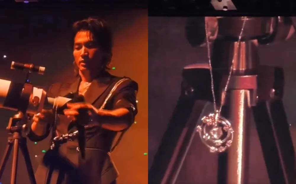 During his solo performance, Jerry paused in the middle of the song and brought out the necklace that his character, Dao Mingsi, gifted Shancai in the 2001 series. He then hung the pendant around a telescope prop, referencing a pivotal scene in “Meteor Garden”. The star then stood solemnly and bowed his head, as if saying a silent prayer for Barbie.