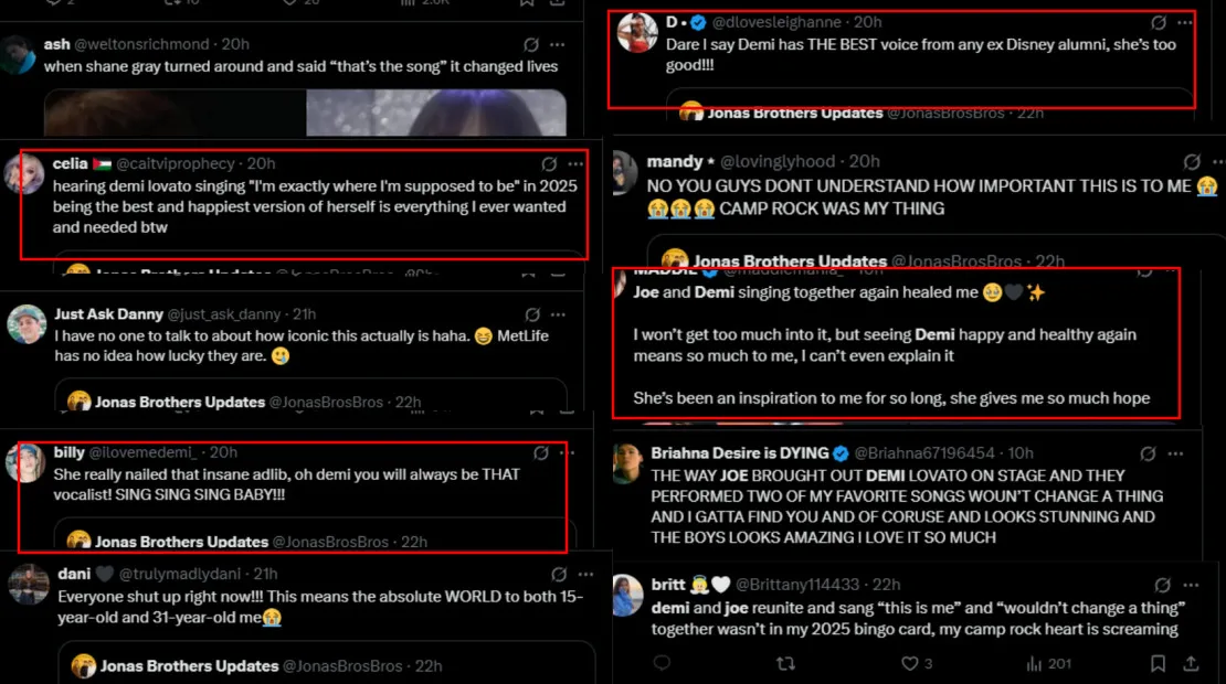 As the lights dimmed, scenes from the first film and its sequel were projected onto the screen. Lead singer Joe then introduced the surprise guest, Demi Lovato, who walked onto the stage to perform “This Is Me”, much to the fans’ excitement. This also marks her first live performance since 2024. From the videos posted, the songstress proved she remains one of Disney’s most skilled vocalists, effortlessly hitting those iconic high notes.