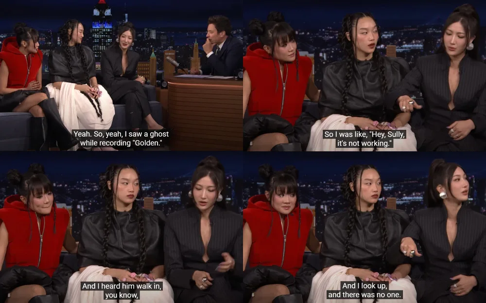 Jimmy Fallon himself announced the achievement during the show, leaving the singers speechless as they reacted live on air. During the interview, EJAE also shared a chilling behind-the-scenes story about the recording of “Golden”. While working in the studio, she noticed her volume knob had suddenly stopped working. Thinking an engineer had entered the room, she heard footsteps and called out, but when she looked up, there was no one there.