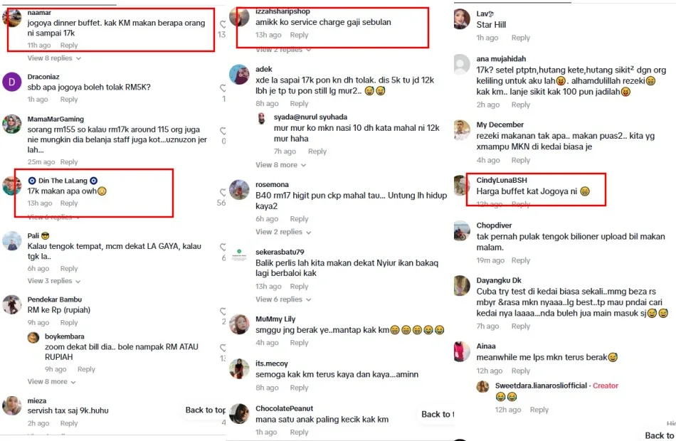Others pointed out that even the service charge (RM1.5k) was equal to their basic salary. According to the official website, the buffet price ranges from RM145+ to RM175+, depending on the time and days of the week, which would explain the astonishing bill. Even so, it still didn’t explain what exactly Kak KM’s family ordered that amounted to RM17k.