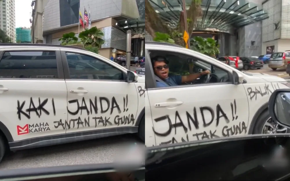Just recently, a video went viral on Twitter of a man driving around Bukit Bintang in a vandalised car. The white Perodua Aruz he was driving around with was covered with words that says “Jantan Tak Guna” (Useless man), “Kaki Janda” (Widow lover), “Hari Hari Janda” (Everyday widows), and other vile phrases.