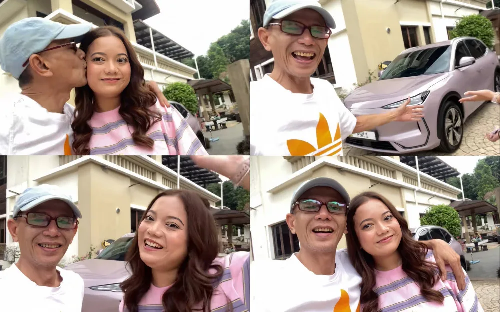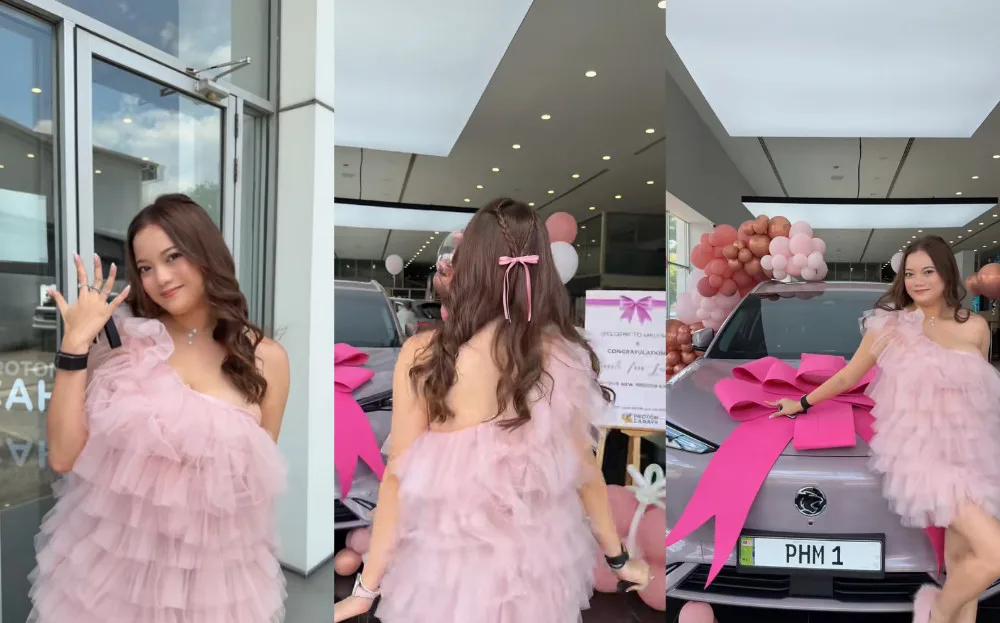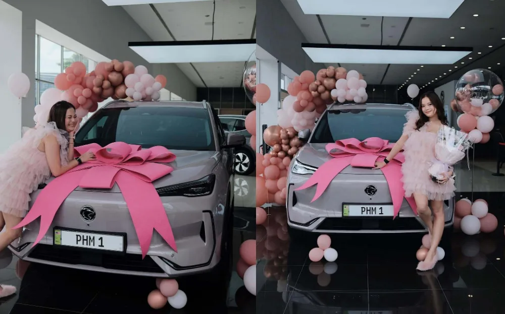 Leona shared the happy news with her followers through a video post that quickly went viral. In the clip, she is seen confidently striding in an all-pink outfit towards her brand-new ride, a Proton e.MAS 7, exuding excitement and a sense of achievement.