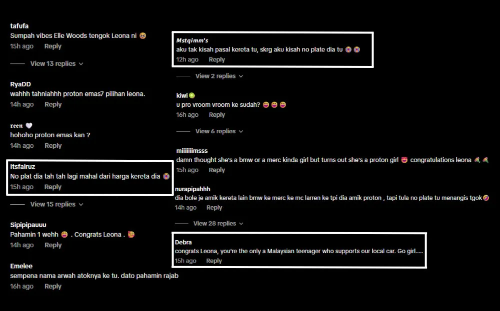 Meanwhile, fans flooded the comments section with praise not only for the achievement itself but also for her thoughtful choice of vehicle. Many applauded Leona for opting for a homegrown Malaysian brand as her very first purchase, calling it a patriotic and relatable move.