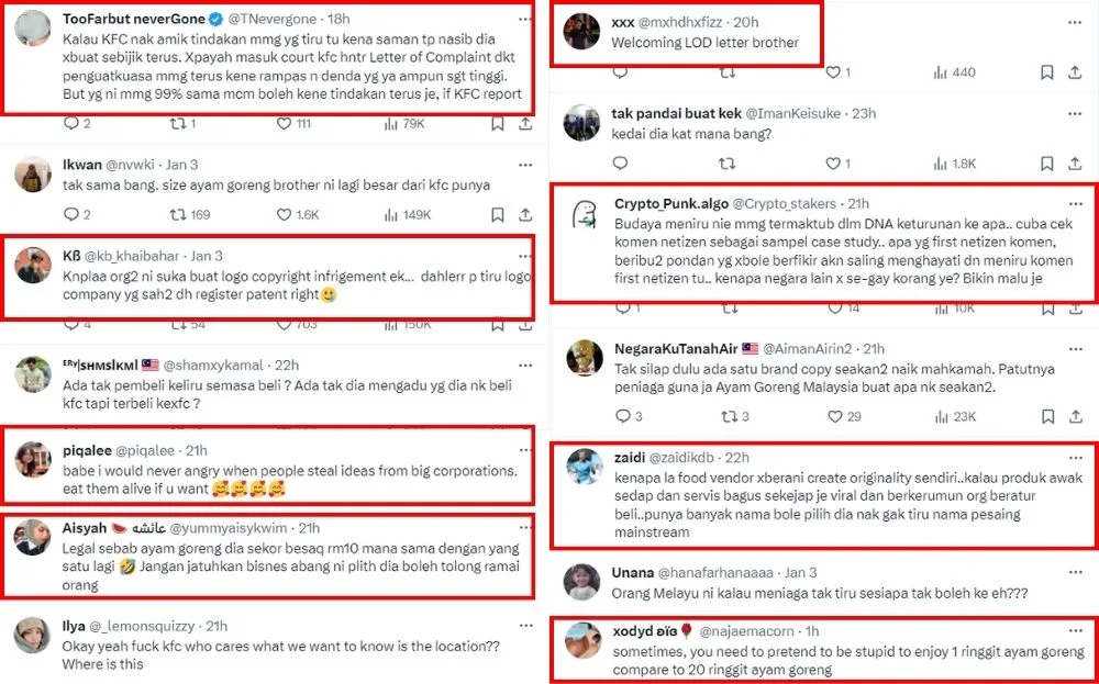 Many netizens have reacted to the tweet, showing mixed reactions to the fried chicken stall. Many slammed the owner, calling him out for blatant copyright infringement. Some also said KFC could sue the stall since they’re copying from the brand. However, many netizens also supported KEXFC, perhaps in light of the recent boycott towards KFC. Some even asked where they could find the stall, noting that the prices were cheaper than the original.