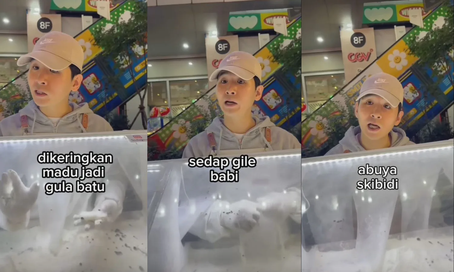 To show he’s truly in tune with current trending Malay slang words, the candy maker humorously introduced himself as ‘Kim Abuya Sikibidi’ in other videos. He also demonstrated his knowledge of common Malay names, blurting out names like Shazwani, Amira, and Siti while trying to guess a customer’s name. His proficiency in Bahasa and ability to joke with customers have attracted not only Malaysian tourists but also visitors from Indonesia, Singapore, and Brunei.