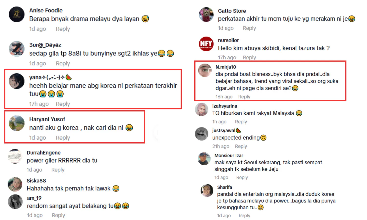 Local netizens were amused by the viral videos, with many wondering where and from whom he learnt the Malay slang. Others praised his clever strategy to attract Muslim customers from Malaysia, helping him stand out among other vendors in the area. Some even mentioned adding a visit to his booth to their bucket list for their next trip to Korea.