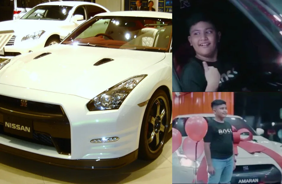 Remember that woman who got the surprise of a lifetime when her boyfriend got her a sparkly pink Porsche for her birthday? That certainly got people talking about how lucky she is. Joining her in getting the surprise of a lifetime is this young boy – Amaran – who got a Nissan GT-R R35 for his 10th birthday. 10TH BIRTHDAY?! Yup, you read that right.