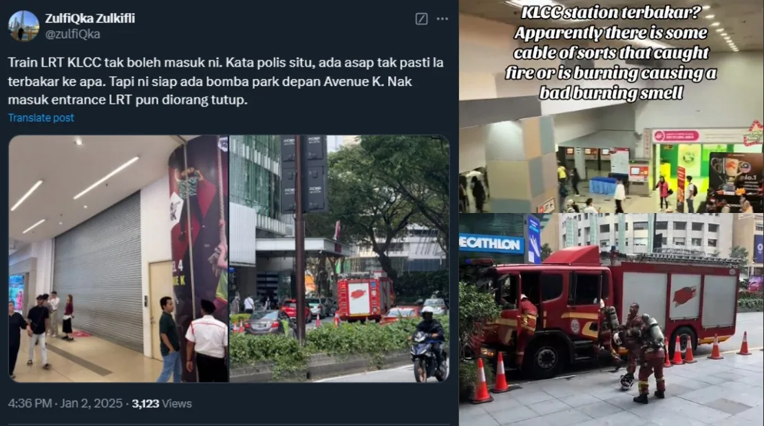 @livelifelah KLCC LRT station has some burn cables causing a terrible burning smell… it is now shut and the fire fighters are looking into it #klcc #lrtklcc #rapidklmalaysia