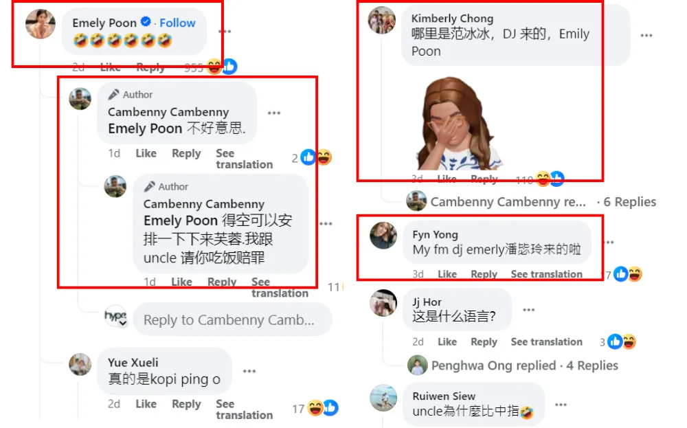 The video then caught the attention of netizens, who quickly realised that “Kopi Bing” was actually MyFM DJ Emely Poon. The radio personality then commented on Cambenny’s video, showing her amusement. It seems that Cambenny felt apologetic for making fun of the public figure, even offering to treat her to a meal to say sorry. Thankfully, Emely doesn’t seem offended by the joke because it looks like she’s fully embracing her new nickname.