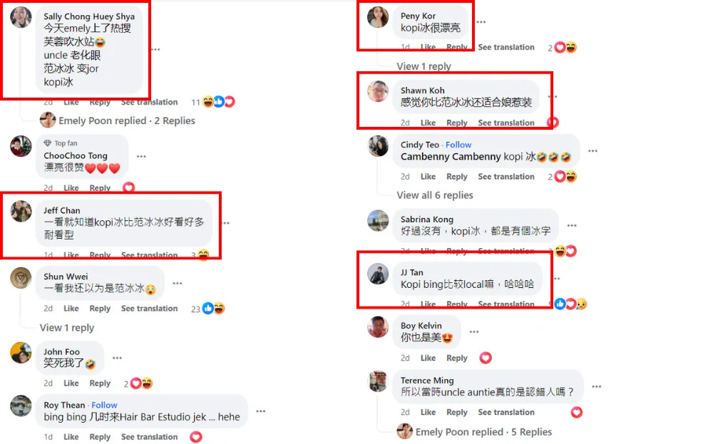 Since the video went viral, the radio personality has referenced her new nickname in her posts, including one where she was drinking iced coffee. Emely also referenced the Kopi Bing nickname when posting photos of her in a pink kebaya, also a reference to Fan Bingbing, who wore a pink kebaya set during her meet and greet in Melaka.