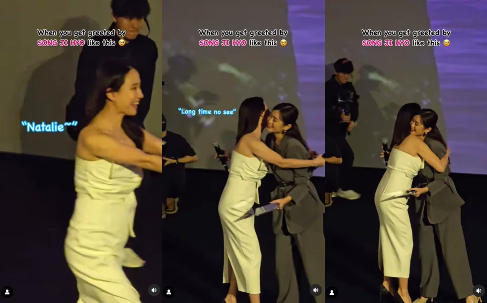 The host shared about the interaction on her Instagram, captioning the video, “When you get greeted by Song Jihyo like this”. In the video, the actress was seen excitedly running towards Natalie from across the room. She even said, “Long time no see!” as she hugged the host. As it turns out, this was the third time Song Jihyo and Natalie had met, so the actress was happy to reunite with a familiar face.