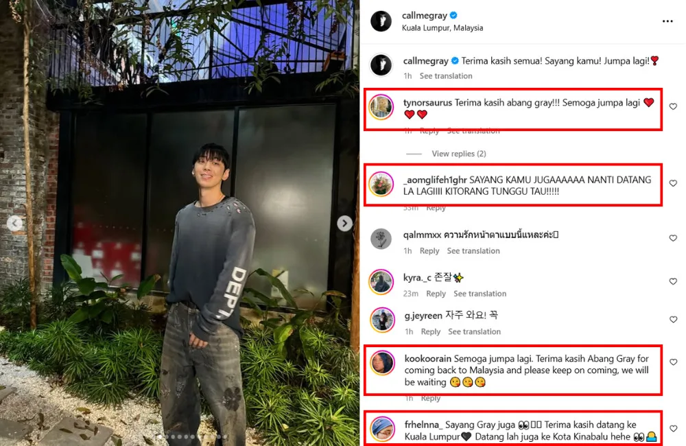The “Party For The Night” singer also shared another post about his KL trip, which included pictures and videos from his appearance at the Hennessy Artistry event. The post was captioned in all Malay, with GRAY writing, “Terima kasih semua! Sayang kamu! Jumpa lagi! (Thank you all! Love you! See you soon!)”. Many local fans have since reacted to the posts, thanking the singer for visiting Malaysia and hoping to see him return soon.