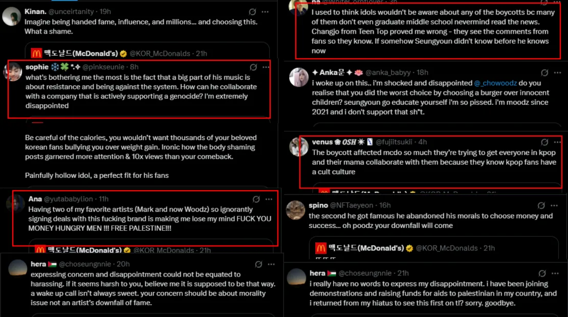 Those on Twitter, on the other hand, were less forgiving. Many criticised the star for collaborating with a boycotted brand, saying he has no excuse for not being aware of the movement, which has been ongoing for two years. Others expressed disappointment that WOODZ, along with NCT’s Mark, would still choose to be associated with McDonald’s despite the boycott. Some accused the idol of hypocrisy, noting that his music often addresses discrimination, liberation and the fight against injustice, only for him to be seen as part of the problem.