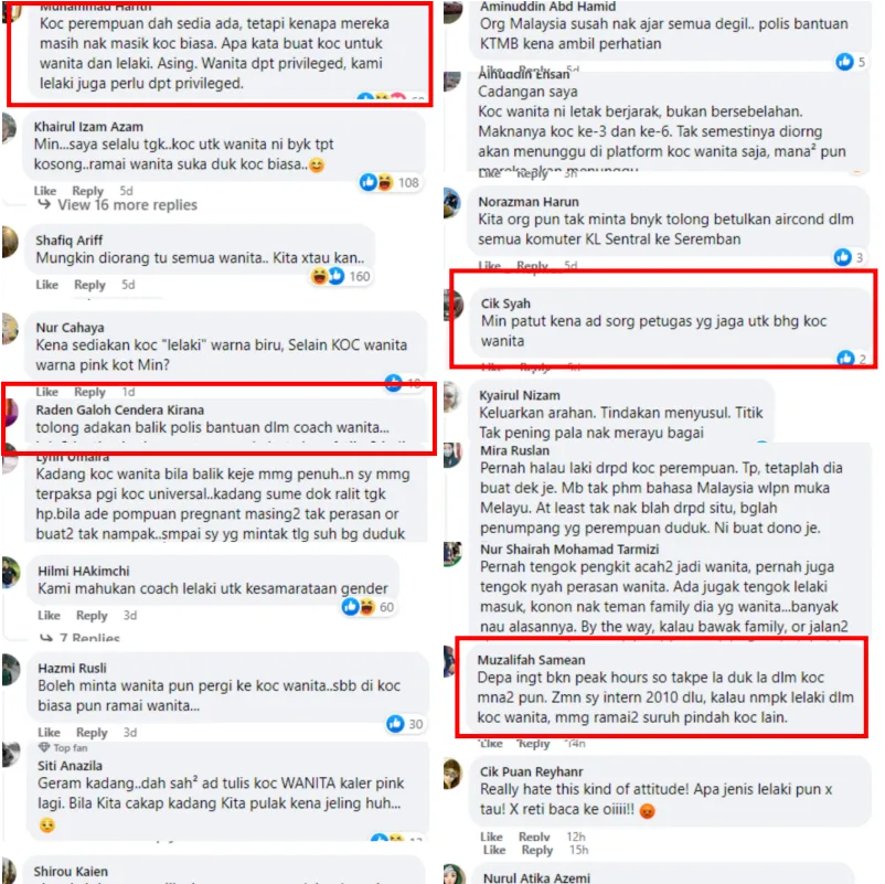 Netizens all took to the comment section to give their thoughts on the situation with some saying that the reason why the Ladies coach aren’t always full is because the passengers are always in a rush to go home so they’re not picky in which coaches they’ll end up using. Some thanked KTMB for providing a space for women so that they can feel safe. Others think that there should also be a Men’s coach.