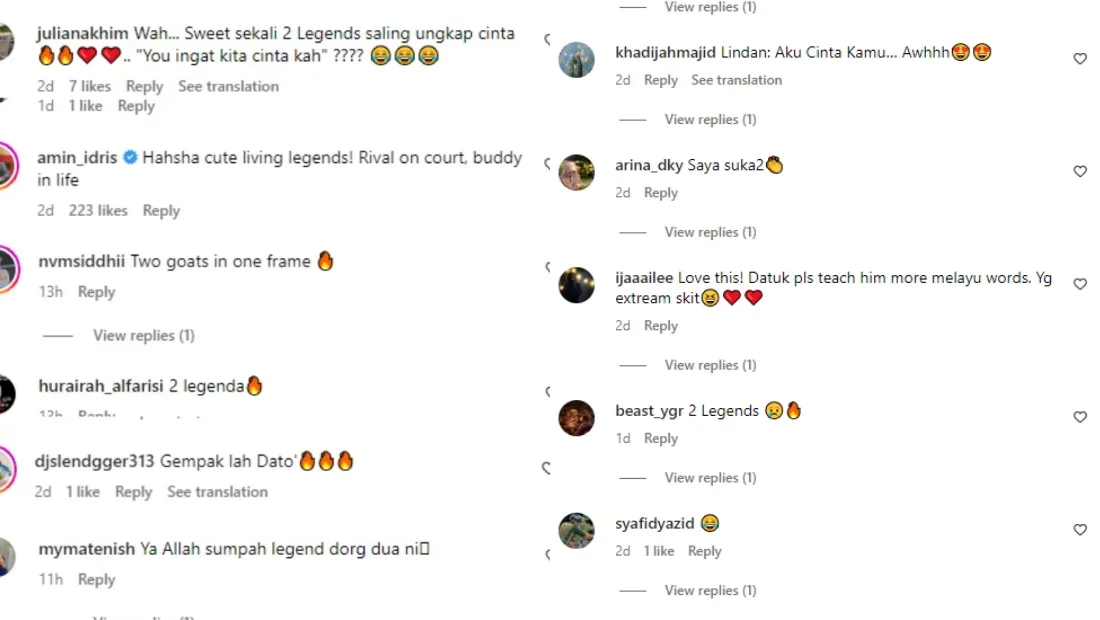 The phrase that got fans amused was “Aku Cinta Kamu” (I love you), which Lin Dan then jokingly used to “express his love” for his Malaysian friend. Lee Chong Wei got flustered and laughed but still appreciated the gesture. The post received mostly positive reactions from Malaysians who were happy to see two legends having a friendly exchange. One even asked the father-of-three to teach his former rival more complicated words.