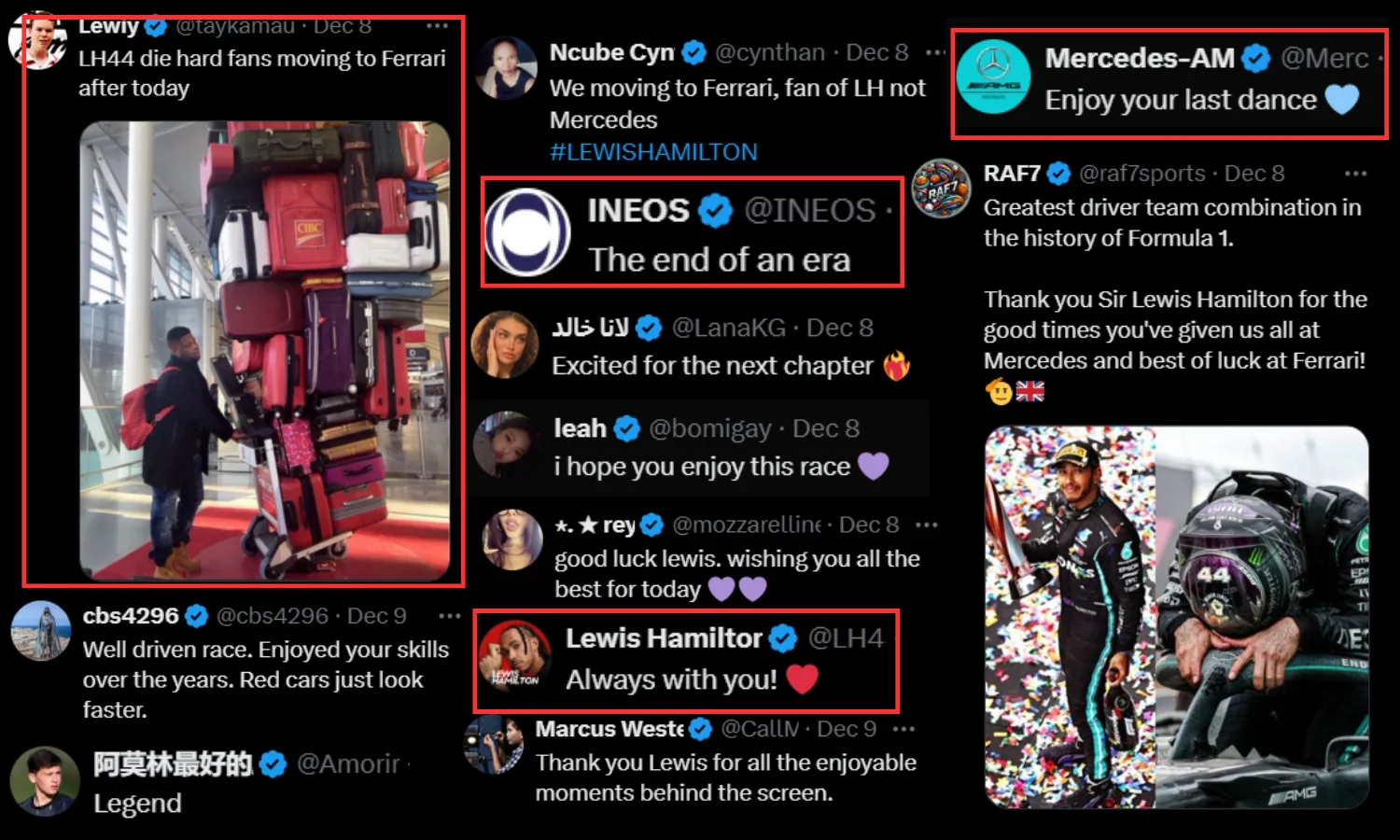 “It’s a very emotional time; I just came from Abu Dhabi and am now straight into my farewells. I’m excited to see the Petronas team, as they’ve been my family for the past 12 years,” said the F1 driver. Netizens shared their thoughts online, expressing sorrow but continuing to support him. Some fans mentioned that they would now be following Ferrari, as they are fans of the driver rather than the team itself, and many are excited to join Lewis in the next chapter of his career.