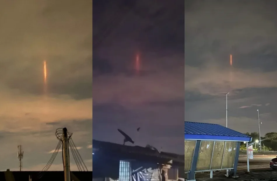Fenomena Light Pillar atau Tiang Cahaya yang dapat disaksikan oleh penduduk di sekitar Johor Bahru malam tadi.