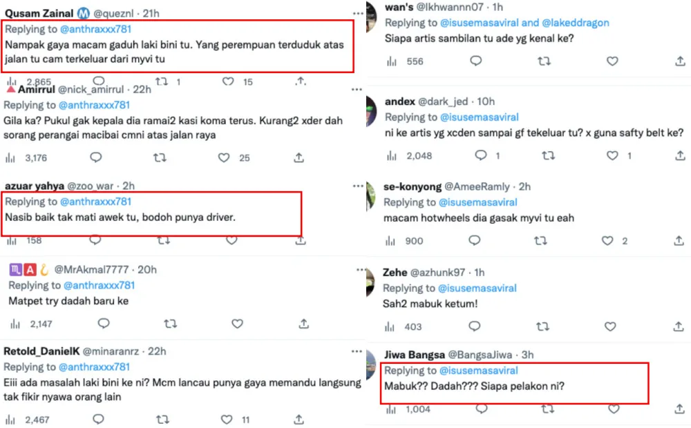 Some netizens speculated that the couple in the Myvi car were arguing, to the point that the driver lost control of the car. Others believe that the driver must have been intoxicated to drive as dangerously as he did. After the video went viral, police were quick to investigate the incident.