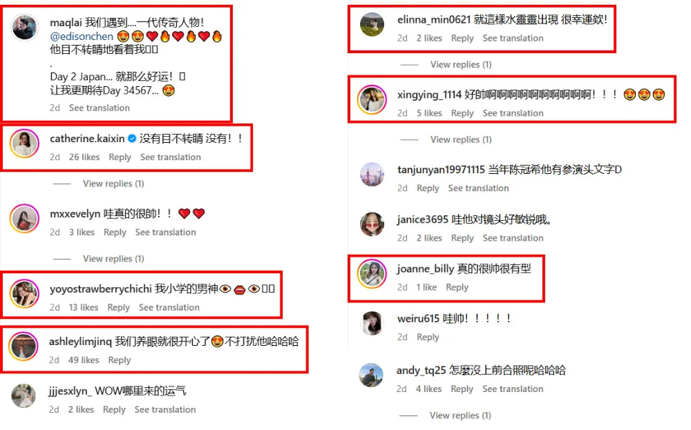 In his captions, Lai Ming Quan wrote, “We met a legendary figure! He looked at me intently! Day 2 (in) Japan, so lucky! We look forward to Day 34567…”. The GoXuan DJ’s post has received tons of likes and comments from local netizens. Many expressed their envy over the two Malaysians for being able to meet Edison Chen while on vacation. Meanwhile, others praised Edison and Qin Shu Pei’s good looks.