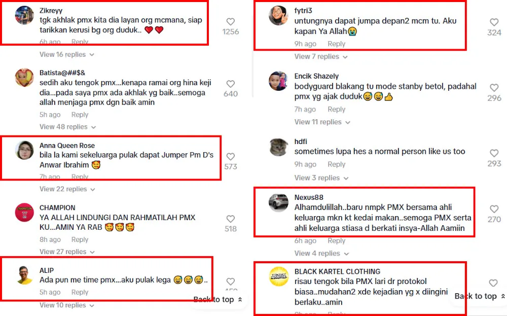 Many netizens have reacted to the video, expressing amazement at the TikTok user’s encounter with the prime minister. Some also expressed jealousy, saying they also wished to meet Anwar Ibrahim in person someday. There were also many comments on the public figure’s humbleness, pointing out how he quickly invited the man to sit next to him. However, some netizens voiced concern over Anwar Ibrahim letting someone get close to him.