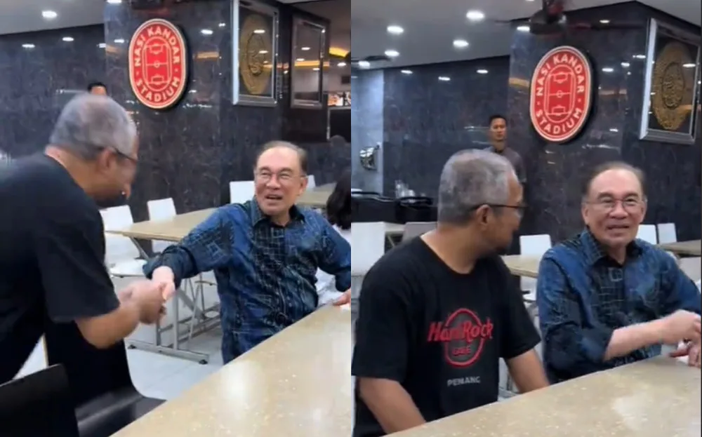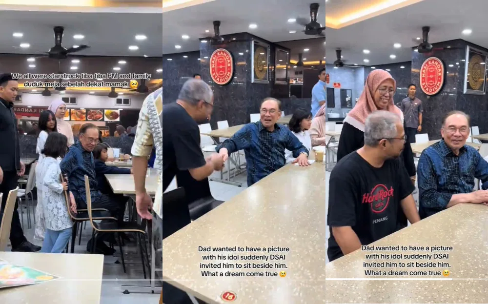 TikTok user @/syxqrx recently shared a video of her family’s unexpected encounter with the premier at a Nasi Kandar Stadium outlet. In the video, Anwar Ibrahim was first seen walking into the mamak with his family, including his grandchildren. The group then sat down on the table beside the TikTok user and her family. According to the video, the user’s father wanted to ask for a photo with the political figure, so he went up to him after his meal.