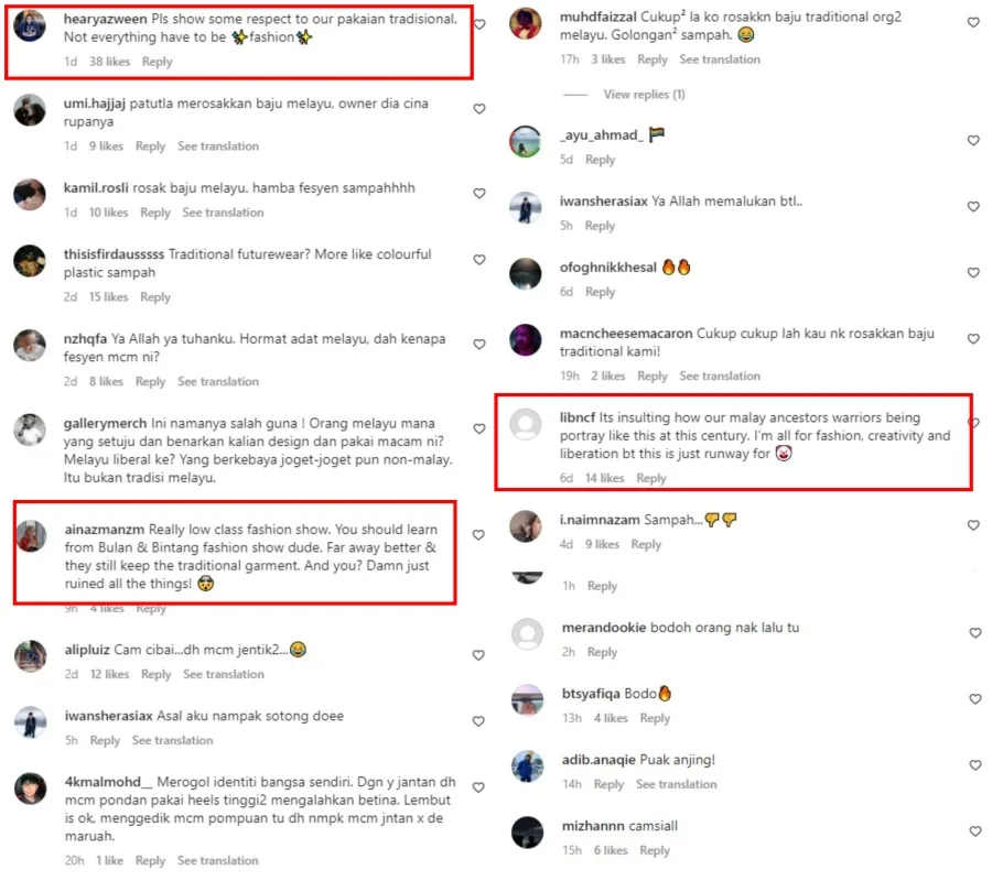 After the fashion company announced the new Raya collection, many criticised it for tarnishing the traditional Malay costume. Some said that the bright colours made the clothes look cheap and of low quality while others accused the brand of insulting the Malay culture. Netizens also criticised the catwalk presentation as it was apparently done at the pedestrian crossing which made it difficult for others to cross the road.