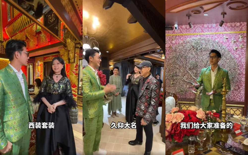 Interestingly, there were many pictures of Dato’ Michelle Yeoh (楊紫瓊) inside the grand showroom. This is because the actress is a close friend of Datuk Jimmy Choo and often sports his works on the red carpet and in movies. During the tour, Edison could be seen in awe of all the luxurious jewellery and, at one point, even joked about having to sell more durian to afford a Jimmy Choo-designed item. The internet celebrity also introduced Datuk Jimmy’s mentee, Peony Sin, who designed his green songket suit for the meeting.
