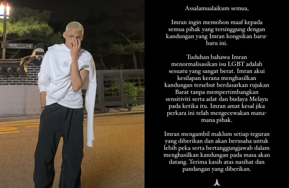 Regardless of intent, the TikTok post received backlash from netizens who deemed it inappropriate and insensitive for Malaysian audiences, given that both characters were portrayed by men. Following the overwhelming criticism, Imran issued an official apology on Twitter: “I admit to my mistake in producing content based on Western references without considering the sensitivity of Malaysian culture. I apologise if I have disappointed many of you,” he wrote in his statement. The TikToker also promised not to make the same mistake in the future.