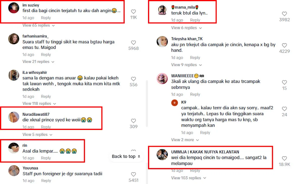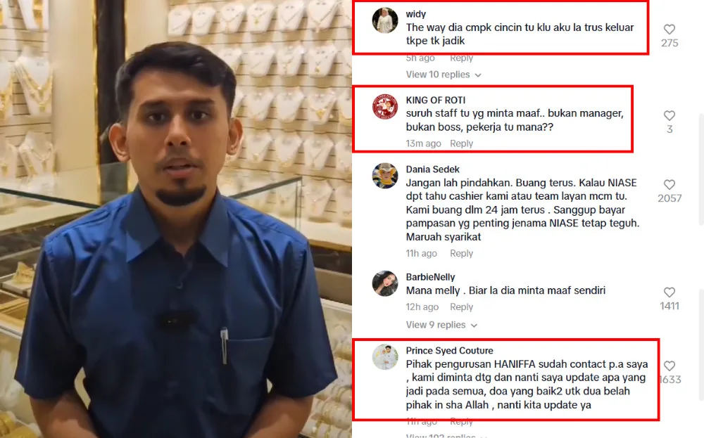 After Syed’s video went viral, Haniffa Jewellers posted their response on TikTok. In the video, a representative from the company issued an apology on behalf of their staff member. The company also said the staff has since been transferred to another branch and will face disciplinary action after an internal investigation. However, netizens weren’t satisfied with the apology, saying the female staff should be apologising.