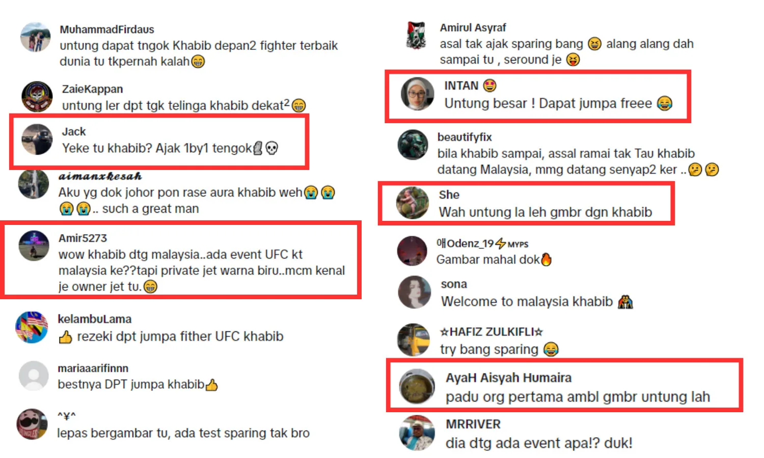 Naturally, other local fans expressed their envy over Udin’s lucky encounter with Khabib, remarking on how fortunate he was to meet the MMA legend in person for free. Many were only just learning about the former star’s visit to Malaysia, while others jokingly asked if Udin had sparred with Khabib to confirm it was really him in the flesh.