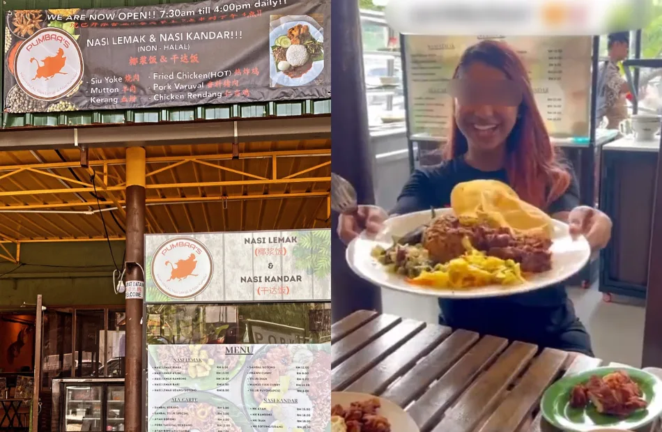 On Sunday (29th October), a video that has been circulating on social media showed an influencer trying out the Nasi Kandar dish at a restaurant called Pumbaa’s Nasi Lemak and Nasi Kandar in Damansara Jaya. What shocked netizens after watching the video was the fact the dish was served with pork. The content creator made several pork-related puns throughout the video through the text captions.