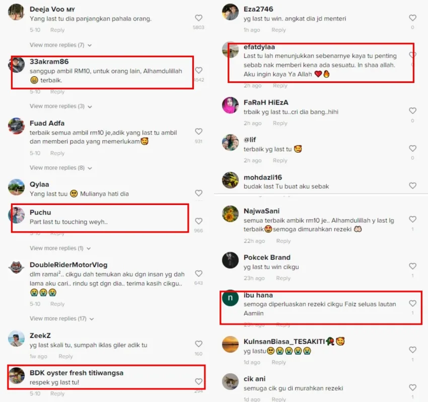 The video ended on a sweet note with one man using the RM10 he took from Cikgu Faiz to donate to a homeless person who was sitting in front of the Bukit Bintang McDonalds outlet. While netizens praised the influencer for his generosity, it was the kindness of the last man in the video (who gave away his RM10 to the homeless person) that melted their hearts.