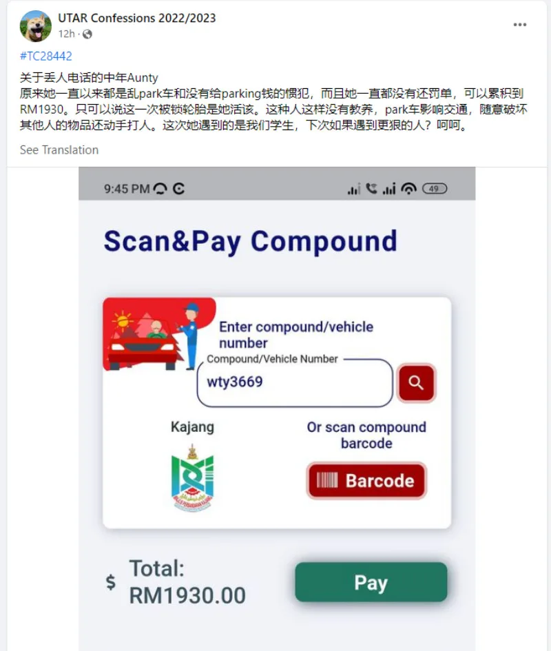 According to the anonymous submissions on the Facebook page, the woman is allegedly a repeat offender, having never paid her summons. At the time of writing, there has been no update from the UTAR Confession page other than memes of the incident. Both police and the university have yet to release a statement regarding the case.
