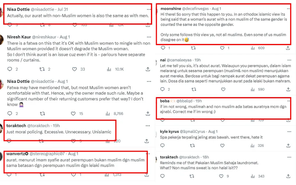 In response to Niresh’s question about the boundaries between a Muslim and a non-Muslim woman, many Muslim netizens have shared a few opinions. Most of them had quoted the fatwa (a formal ruling of Islamic laws by muftis) which states that the ‘aurat’ of a Muslim woman should still be protected from non-Muslim women. This could explain why the specific beauty parlour branch did not accept non-Muslim customers. However, some argue that the rule was just unnecessary policing of religious boundaries.