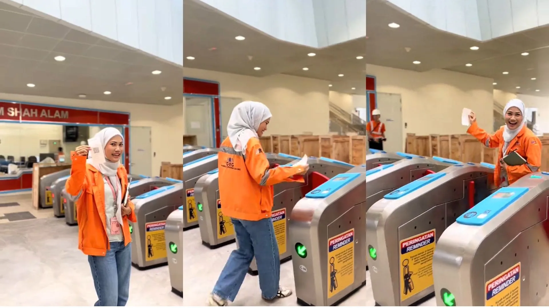 On 21st April (Monday), passion, pride and jittery excitement bleed out of one of the engineers who identifies as Afaf, showing users a behind-the-scenes glimpse at the soon-to-be operational Stadium Shah Alam station. The station will form part of the rail line connecting Bandar Utama to Johan Setia in Klang. The empty ticket gates, corridors, and ticket machines bear witness to infectious smiles and laughter as the peppy engineer prances across the screen.