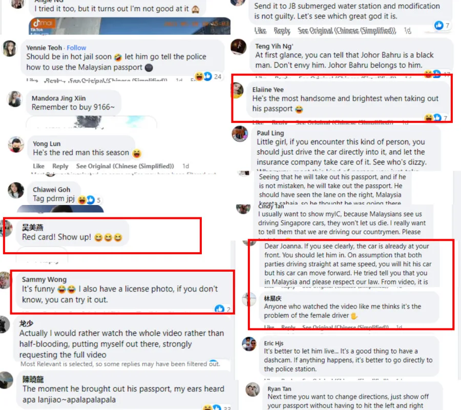The male driver appeared furious when she didn’t budge despite him showing off his “privilege”. He then got out of his vehicle to point out the Malaysian plate number on his car. In her Facebook post, Joanna pointed out that she and her passengers are also Malaysian and even if they were Singaporean, it still doesn’t give this man the right to bully others just cause he has a Malaysian passport.