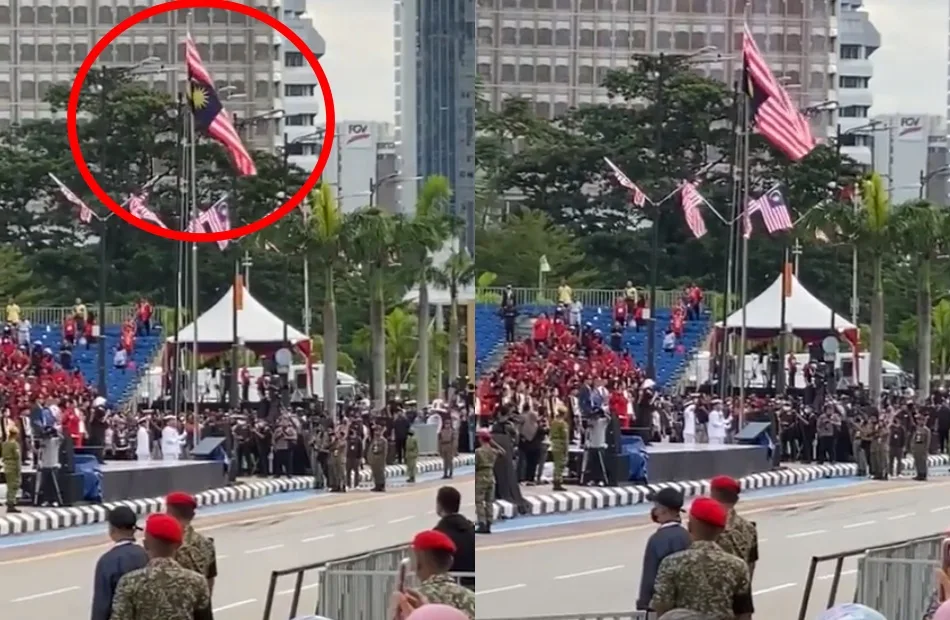 Twitter user @zack_rockstar posted a video of the National Day (Merdeka) Parade rehearsal that happened recently where we can see a military officer in the ceremonial uniform hoisting the Malaysian flag to the top of the flag pole while the National Anthem was playing. What shocked the public was the fact that the flag was upside down.