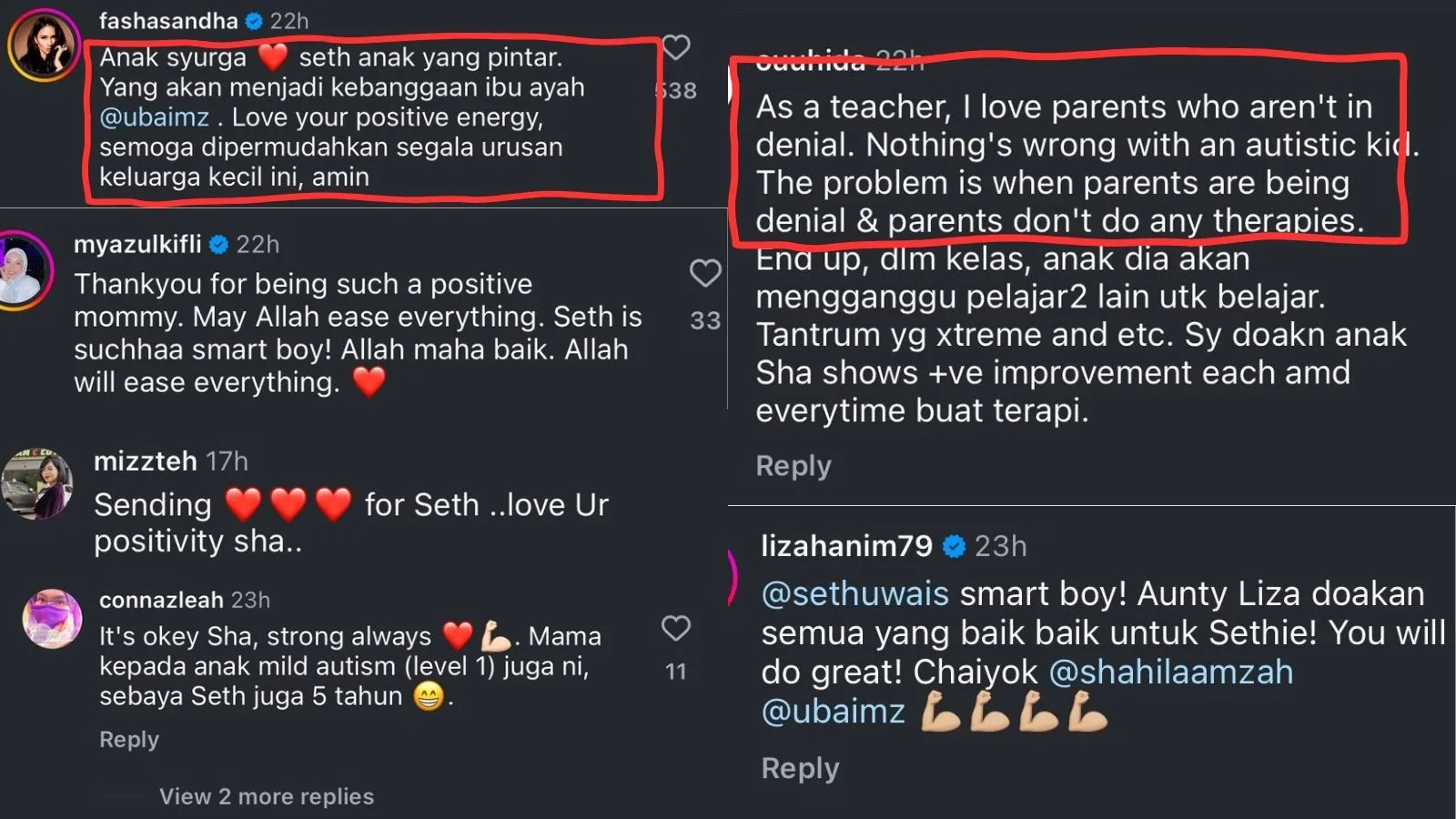 Following her post, the response from netizens has been overwhelmingly positive, with many praising Shila’s proactive and optimistic approach. Local actress Fasha Sandha commented, “Seth is a smart kid who will become the pride of his mum and dad. Love your positive energy. May Allah ease everything.” Another netizen added, “I love parents who aren’t in denial. Nothing is wrong with an autistic kid.”