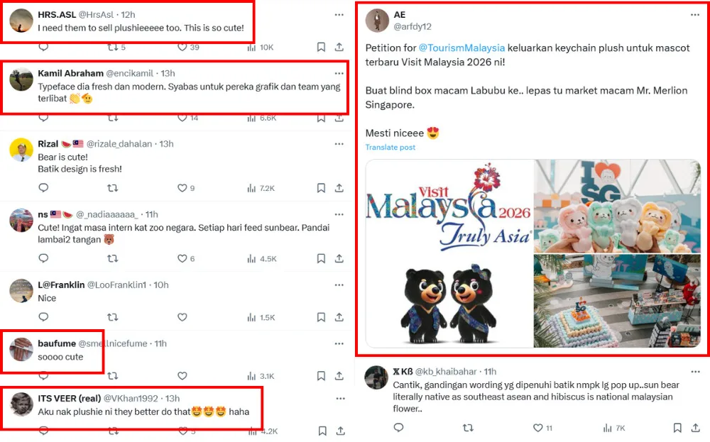 Many Malaysians have since shared their reactions to the new “VM2026” logo and mascot. Many praised the design of the logo, highlighting the modern typeface. Many also cooed over the cute designs of Wira and Manja. Some also urged the Malaysian Tourism Board to release collectable dolls of the mascots, even suggesting the dolls be made into random boxes, akin to POPMART’s Labubu, to increase sales.